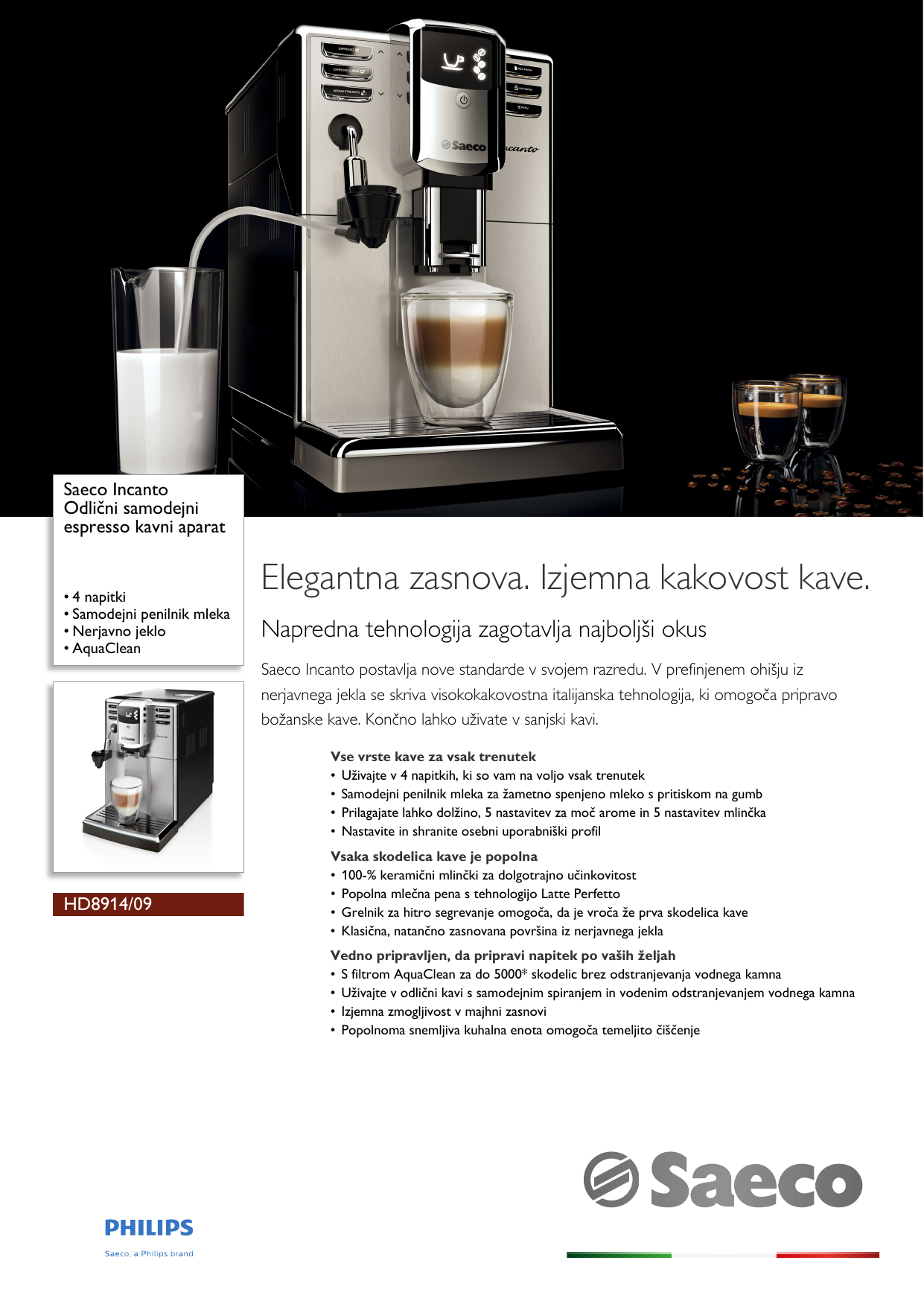 Philips Hd8914 09 Saeco Odlicni Samodejni Espresso Kavni Aparat