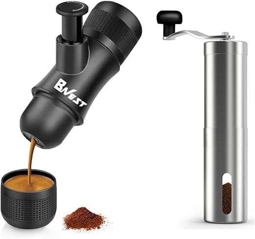 Amazon Com Portable Mini Espresso Maker With Coffee Grinder Set