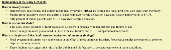 Fecal Evacuation Disorders In Anal Fissure Hemorrhoids And