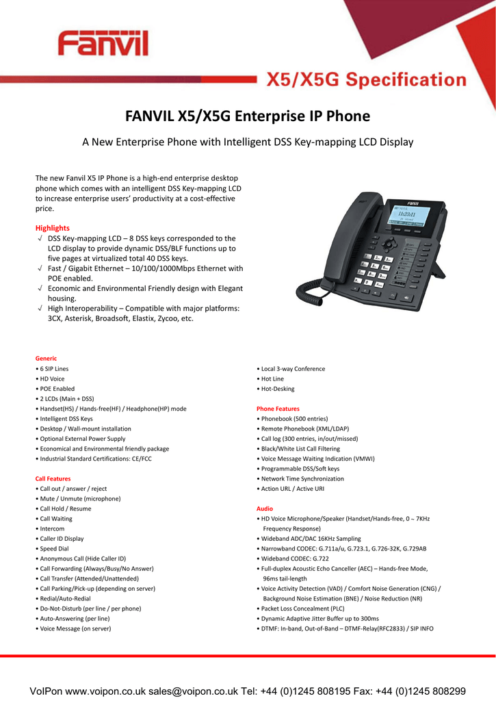 Fanvil X5 X5g Datasheet Manualzz