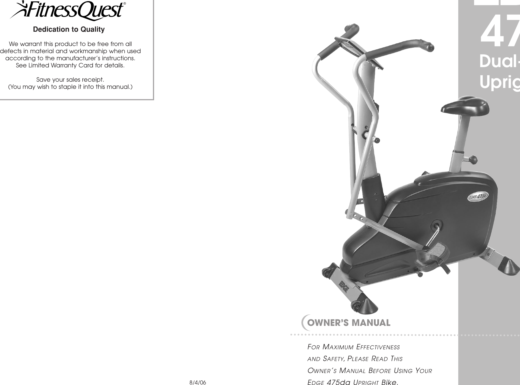 Fitness Quest Edge 475u Users Manual 475da 8 4 06